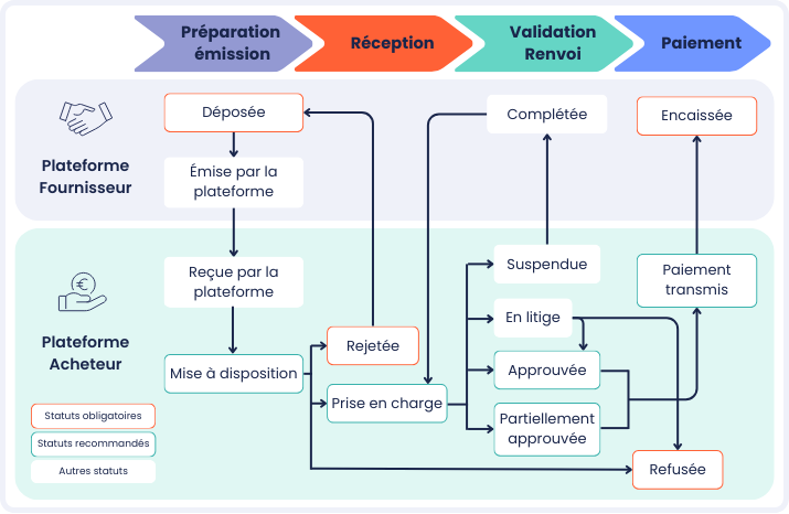 - Suivi des statuts réglementaires : visualisez en temps réel si vos factures sont déposées, reçues ou encaissées.